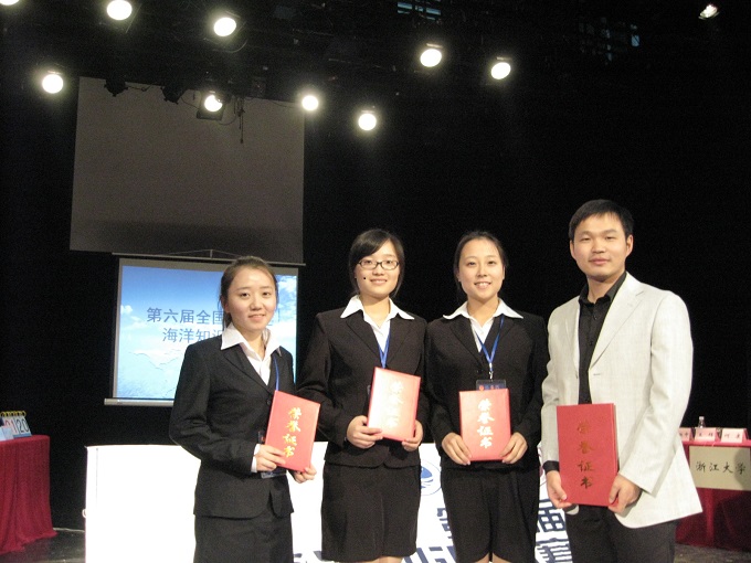 选拔的刘冠琪、张莉、陶丽婷等3位同学赴南京大学仙林校区,参加第六届全国大学生海洋知识华东区决赛,并在激烈的角逐中斩获全国团体及个人二等奖,为历年来安徽高校最好成绩。