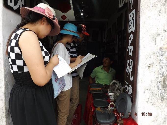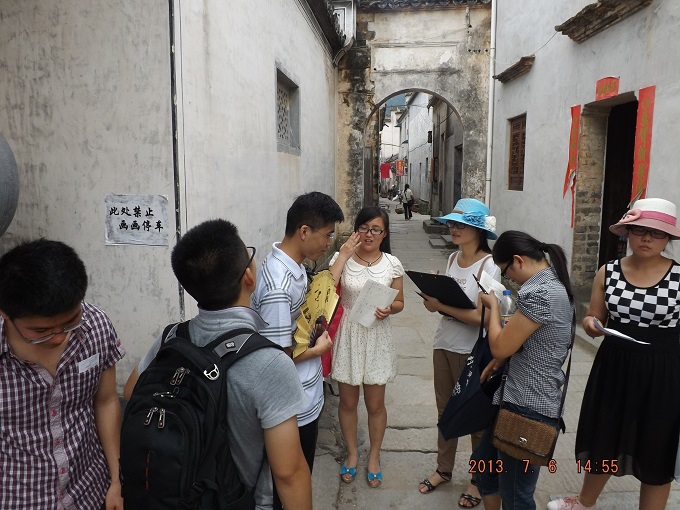 7月6日2时许,安师大国旅赴黟县“寻根古建筑,触摸古文化”专业调研团队在队长的带领下,内部再为A、B两组,A组负责古建筑构成调研,B组则针对古建筑保护做相关实际问答,双管齐下对宏村古建筑进行考察。