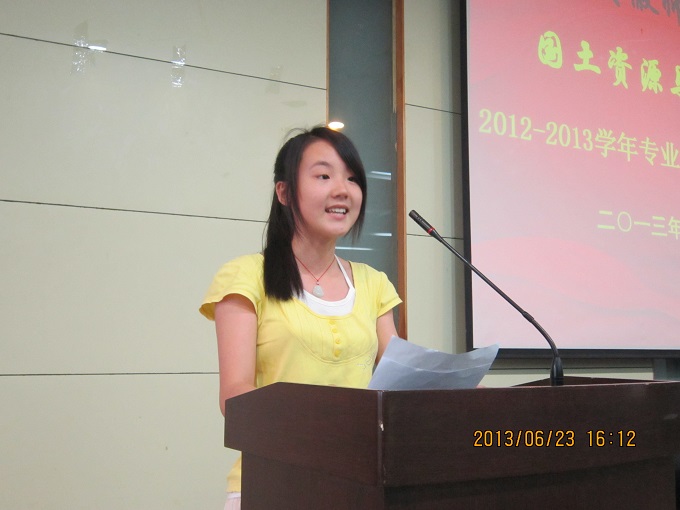 首先,院长焦华富宣读了《关于表彰2010级旅游管理、土地资源管理第一批专业实习优秀小组、优秀个人和优秀案例的决定》,授予深圳圣庭院大酒店实习小组、绍兴开元名都大酒店实习小组、南京国图信息产业股份有限公司实习小组“优秀实习小组”称号;授予吕珂、徐柯等9人“优秀实习生”称号;郭汪宝等13名同学撰写的实习案例被评为“优秀实习案例”。随后,来自10级的4名优秀实习小组及优秀实习生代表分别作了发言。他们通过引人入胜的自我展示,讲述了实习期间难忘的工作经历和艰辛的成长历程。他们均表示,本次顶岗实习,提升了专业技能水平,提高了自身的心理素质,对思考今后的人生、规划自己的未来奠定了更坚实的基础。之后,党委副书记罗振对本次实习做了组织管理的全面总结,重申了学院实习工作领导小组的各项工作和部署。此外,对同学们所取得的成绩进行肯定和表扬并由各位领导老师向获奖学生颁发荣誉证书。