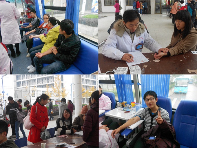 在团委老师﹑辅导员及团学骨干的组织引导下,同学们依次填表、登记、进行心跳检测、血型检测、进献血车献血、领取献血证,一切井井有条。体检合格的同学兴高采烈地走进献血车,体检不合格的同学则颇有遗憾,表示今后要加强营养与锻炼,争取下次献血体检成功。老师、同学们无私奉献的精神让人感动,尤其在11月17日中午,天空飘着濛濛的寒雨,辅导员张玥老师亦冒雨来到活动现场,亲切慰问献血的同学,场面亲切感人。在辅导员老师的关怀下,同学们更是拿出了“新雷锋”的风采:正在抽血的同学居然笑着摆出“V”字形手势。当被问及献血时的感受时,12级地理科学专业的卢宇笑着说:“献血有益于健康,还能挽救他人的生命,为社会做贡献,感觉真像做了回雷锋呢!”