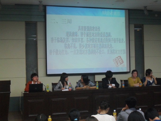 本次培训会由文礼部马雪洁和赵俊主持,在对主讲人做了简单的介绍后,培训会正式开始。首先,由辩协副会长郭宁清结合自己在辩协的工作经验与辩论的专业知识,向各成员介绍了辩论的环节和规则。并且让在场成员观看了国际大专辩论赛的视频,让会员们更加直观地了解辩论赛事。随后,辩论团的各个团长分别介绍了辩论当中各个辩手的职责和辩论技巧。,并给大家分享了一些她们在参加辩论赛中的经验。整个交流会过程中,各成员认真听取了相关知识和经验,同时对于重点内容也做了相应笔记。本次培训会的最后一个环节是有奖抢答活动,各位成员在此环节表现得活跃积极。