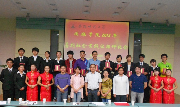 9月16日下午 ,国旅学院在实验楼101教室开展了主题为“实践葆党性,归来话成果”的2012年暑期社会实践总结评比活动。学院党委副书记罗振、团委书记施华转和非毕业班专兼职辅导员出席评比会现场,并担任评委,共有全校10余个学院200余名队员代表参加了总结评比活动。