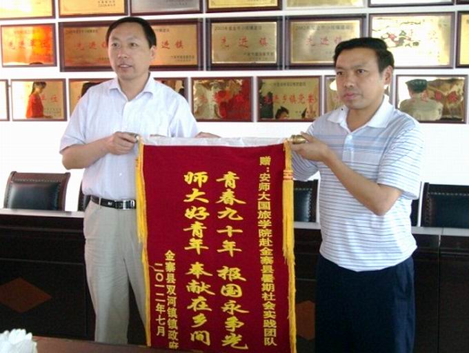 会上,校团委常务副书记邵登辉还代表学校向当地党政机关赠送了铁画纪念品,双河镇政府向国旅学院赠送锦旗表示感谢。随后,色情动漫
