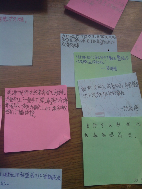 本次义务支教活动得到了当地村委会及校方领导的大力支持,进行了充分的宣传工作,各学生家长对活动也给予了极大地肯定和关注。活动伊始,队员们在校方领导老师的带领下,简单的参观了校园,并与学生进行了简单的交流,与学生们互相认识。下午主要是安排课堂教学与课业温习,一共涉及到1至5年级70多名小学生,课程内容包括语文、英语、数学等。教学过程中,小朋友们无不认真听讲,积极发言。除了对书本知识的辅导,队友们还为小学生们设计了手工课,并教授他们最新的广播体操,希望孩子们在学习的同时能注意体质的锻炼。最新的广播体操虽然很难,但孩子们学得都极为认真,也从中找到了极大地乐趣。孩子们纷纷写下了动情的“寄语小卡片”。
