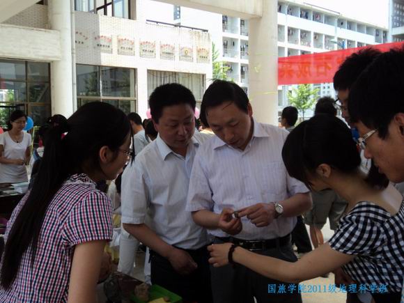 2011级地理科学专业同学于大学生活动中心广场,成功举办“我与化石有个约会”——野外专业实习成果展。国旅学院党政领导以及兄弟学院领导老师,应邀前往化石展览现场,与实习师生进行广泛交流与指导。本次野外实习指导老师程先富、王心源、高超等老师,也现场为前来观摩师生讲解本次展览化石的相关知识。