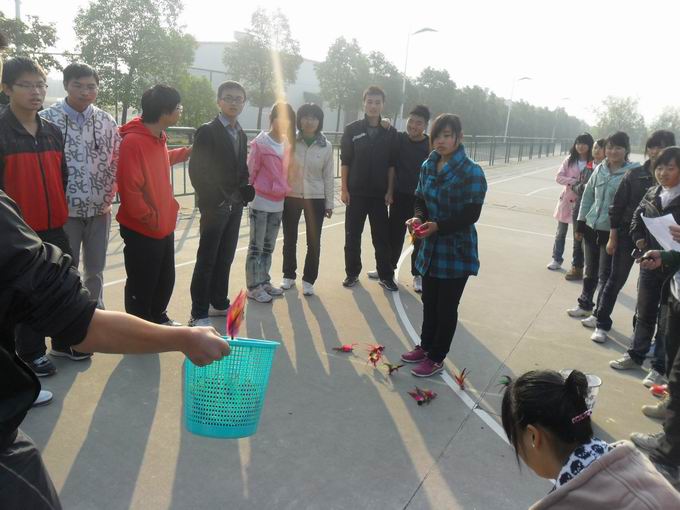 此次活动以“激情释放,健康生活”为主题。学院全体11级新生参加了此次趣味运动会,比赛以寝室为单位,每两个寝室为一组,每组可逐一参加“干旱大抢救”、“天女散花”、“盲人障碍赛”、“夹球接力”、“两人三足”等五项比赛。比赛开始后,各比赛场地沸腾起来:干旱大抢救和两人三足比赛场上同学们相互配合动作默契;天女散花比赛场上同学们身手矫捷,反应灵活;参加盲人障碍赛比赛的同学们配合默契动作协调;夹球接力比赛上高手不断涌现,纪录一次又一次被刷新。