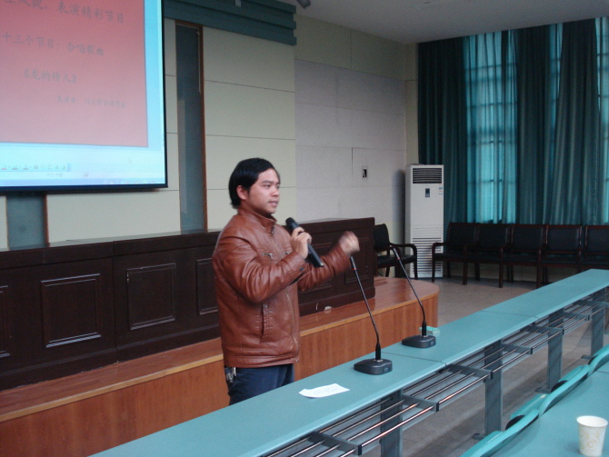 在激情饱满的团歌声中,活动拉开了帷幕。2010级土管专业辅导员梁超老师要求同学们要以校两代会的召开为契机,努力学习,积极工作,做一个有志有为的当代青年。随后,作为校两代会列席代表的团支书和班长为同学们传达了两会的会议精神。最后,同学们进行了激情洋溢的表演活动,诗文朗诵、豪情歌唱、魔术表演等等,精彩纷呈的表演赢得了大家热情的掌声。梁老师也即兴演唱了一首《不见不散》,把表演活动推向高潮。