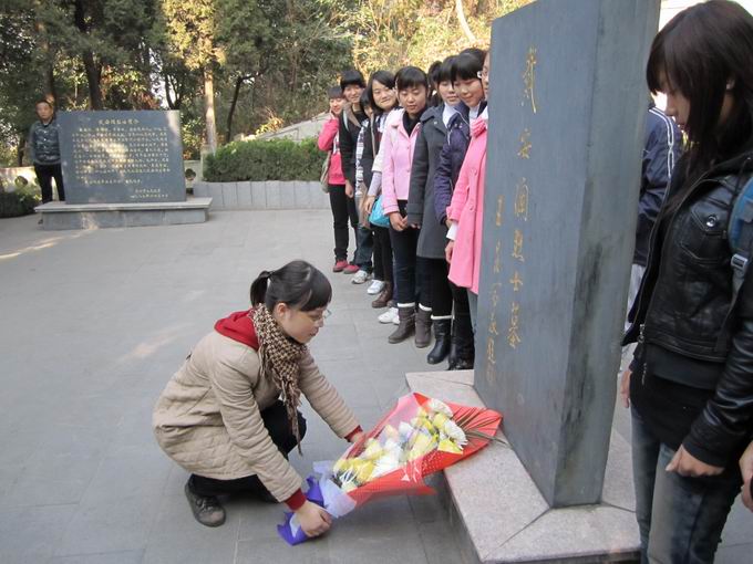 当天上午,党课学员们们排着整齐的队伍,举着党旗,来到戴安澜烈士墓。在烈士墓下,同学们静心倾听先辈的革命故事,感受他们的革命精神,向革命烈士们献上了一束束鲜花,以示缅怀之情。面对烈士墓,同学们集体默哀,寄托着对烈士的崇敬和哀思。之后,同学们进行了集体宣誓:发奋读书,努力成才,为祖国的繁荣富强时刻奋斗!誓词在纪念碑前久久的回荡……