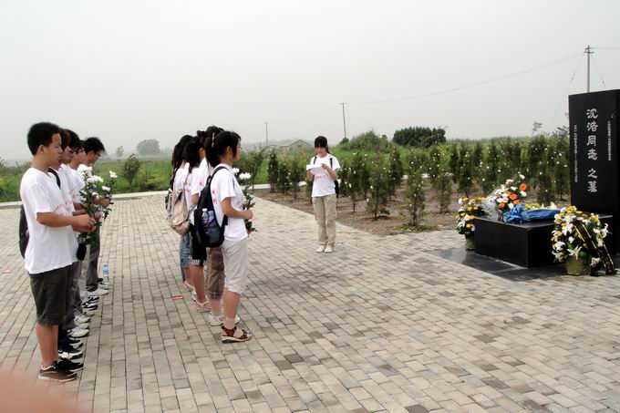 国土资源与旅游学院赴小岗村暑期社会实践团队一行18人来到小岗村公墓,进行祭扫沈浩书记墓活动。