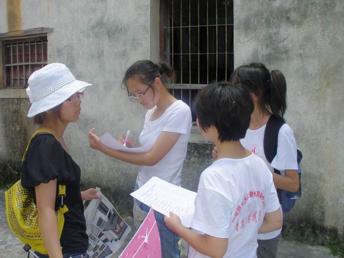 在这6天的活动中,团队先后走访了黟县西递宏村景区、歙县许村、唐模景区和绩溪县龙川景区。通过实地考察、发放调查问卷、与旅客互动、走访当地村委会等方式,系统的了解了徽州古民居近期保护措施以及旅游开发程度。此外,队员们还利用层次分析法对古民居进行了破坏等级分析。活动中,团队发现了“百村千幢”古民居保护工程的不足之处、旅游开发对古民居的破坏、当地居民拆旧改新对古民居的损毁等一系列问题。同时,也了解了一些当地人民保护古民居的感人事迹。
