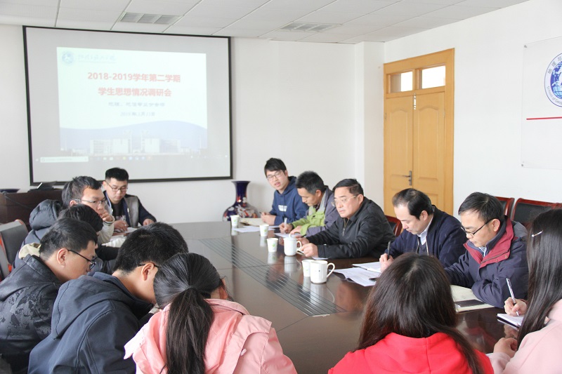 2019年新学期学风建设推进专项工作会议在院行政楼四楼会议室召开,院党委书记贾冠忠、院长苏勤、院党委副书记乔静及全体辅导员参与此次会议。
