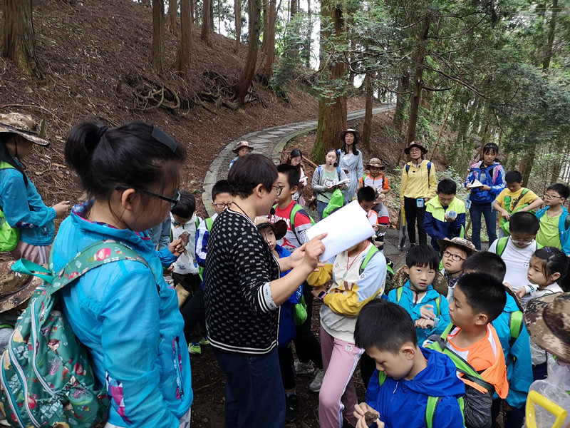 鉴于庐山大部分地区土壤分层明显,是华东地区典型的土壤环境代表,团队队员在指导老师余健和房莉的指导下为夏令营小学员普及土壤知识,指导测量土壤剖面。在观察和实验中,房莉运用前期已教思维导图的原理,从土壤的发生发展变化等多方面,使大家了解到土壤是一种不可再生资源,切实培养学员土壤保护意识。