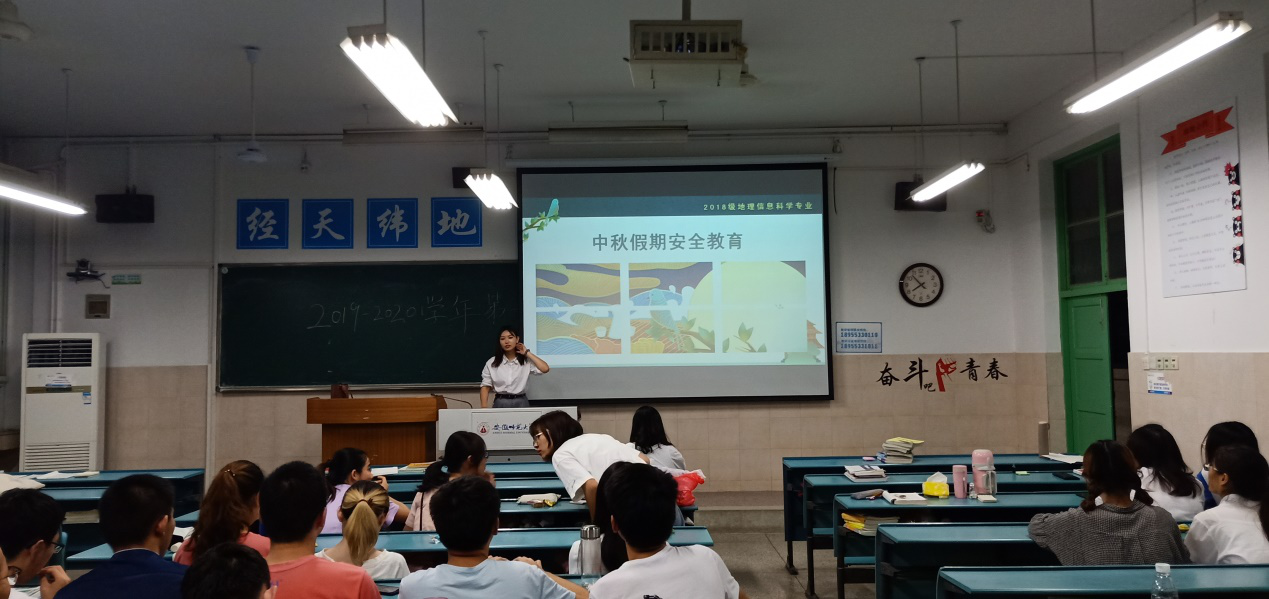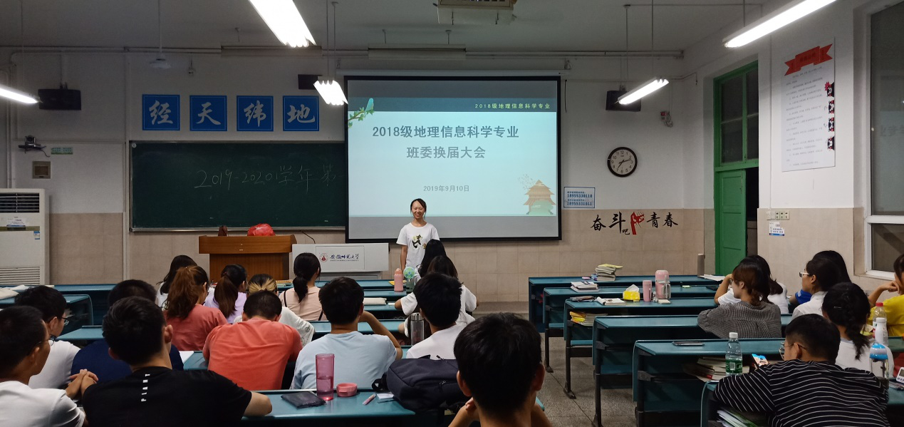 孙雯杰)2018级地理信息科学专业于9月10日晚7:00在教室2040501举行大二新学期第一场班会。班会由辅导员吴文涵主持,2018级地理信息科学专业全体同学参与会议。