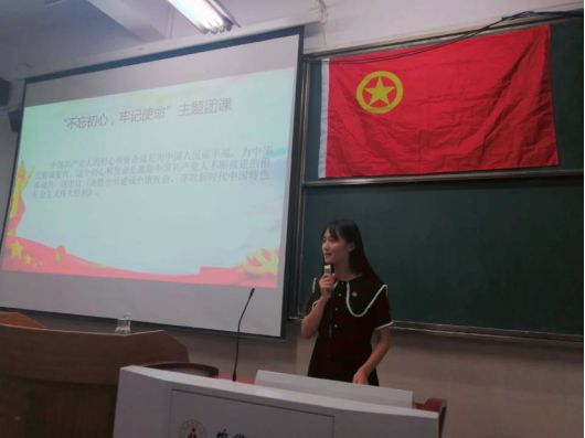 活动伊始,全体同学起立齐唱国歌,随后,陈冬阳、朱敏和胡磊三位入党积极分子作为代表以“我与祖国共成长”为主题讲述新中国成立以来他们与祖国共同进步、共同成长的故事。活动中,何雨婷给同学们上了一次“不忘初心,牢记使命“的主题团课,并鼓舞大家能不忘初心跟党走,牢记使命勇担当。听完团课,同学们一起观看了《天安门广场数万人表白祖国》视频,催人泪下的视频将班级氛围引入高潮。最后,王阳做总结发言,鼓励同学们坚定理想信念,刻苦学习,不断提高自身的综合素质,不忘发扬艰苦奋斗的精神!