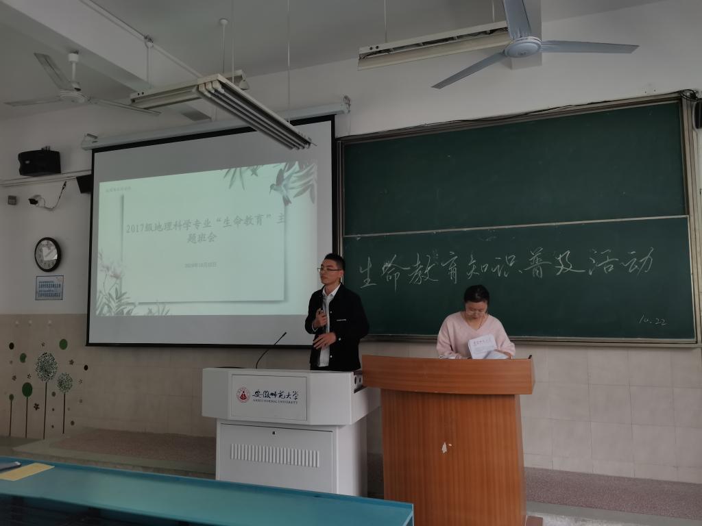 孙夏路遥)10月22日上午, 2017级地科、地信专业生命教育主题班会在行知楼2040303教室召开,2017级地科、地信专业全体同学参加,会议由辅导员韩红豆主持。
