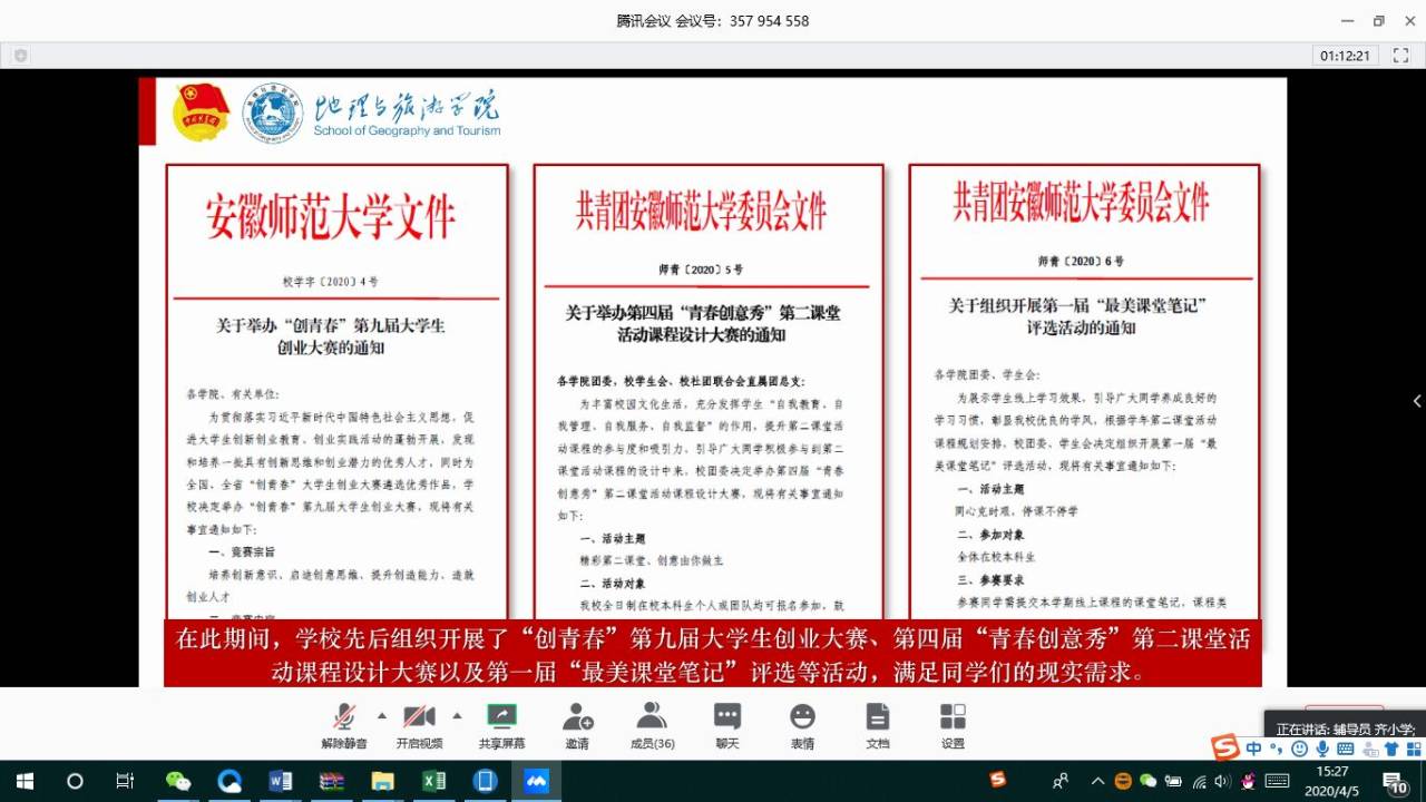 高向文 齐小学)共抗疫情作贡献,适应学习新常态。4月5日下午, 2017级城乡规划专业利用腾讯会议网络平台举行了“共抗疫情、爱国力行”的主题班会,班级全体同学参加会议。会议由辅导员齐小学主持。
