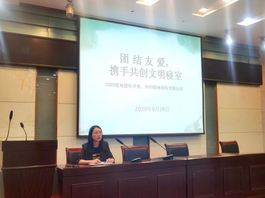 2020级地理科学类、地理科学(拔尖班)在实验楼101举行了“团结友爱,携手共创文明寝室”主题班会,会议由辅导员彭媛媛主持。