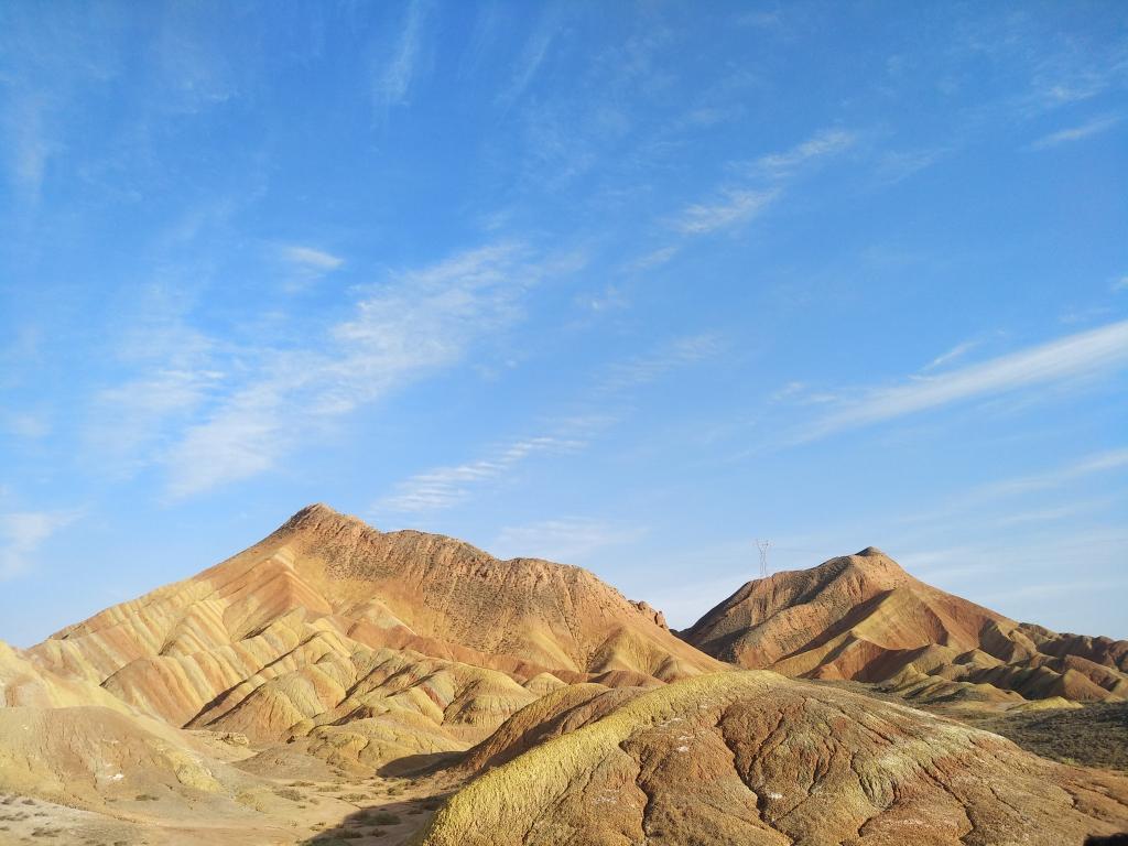 第五个地点考察完成后,同学们又经历了两个多小时的车程来到了今天的第二个实习考察点——张掖的七彩丹霞。程先富先讲解了丹霞地貌形成的地质过程和影响其颜色的因素。程先富接着又给大家介绍了丹霞山的地貌特点——顶平、崖峭、麓缓,为了让同学们更好地理解,程先富十分形象的将其比作为一顶帽子。