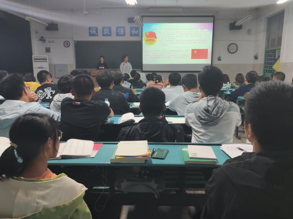 最后,全体同学起立宣誓。“以小我融入大我,把青春献给祖国,此生无悔入华夏,来世还做中国人!”历历在目的庄重誓言,字字刻进了在场所有新时代中国青年的心中。至此,本次“四个一”团员意识教育活动圆满结束。