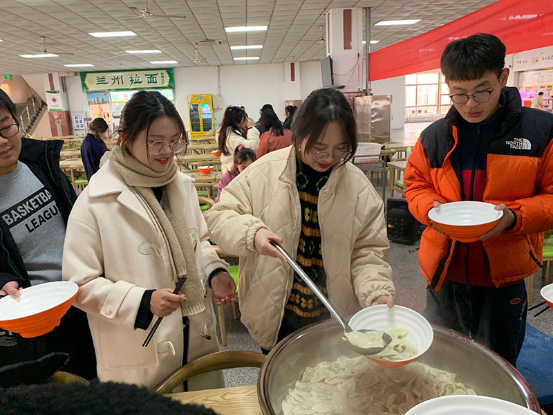 随后,徐倩老师亲手为同学们包了有着特殊馅料的饺子并放入大家的饺子中,由食堂的工作人员进行煮制,分盛给各位同学。有一位“幸运儿”吃到了特殊馅料的饺子,获得了“幸运儿”专属的礼品——有着辅导员亲笔所写祝福的便签本。