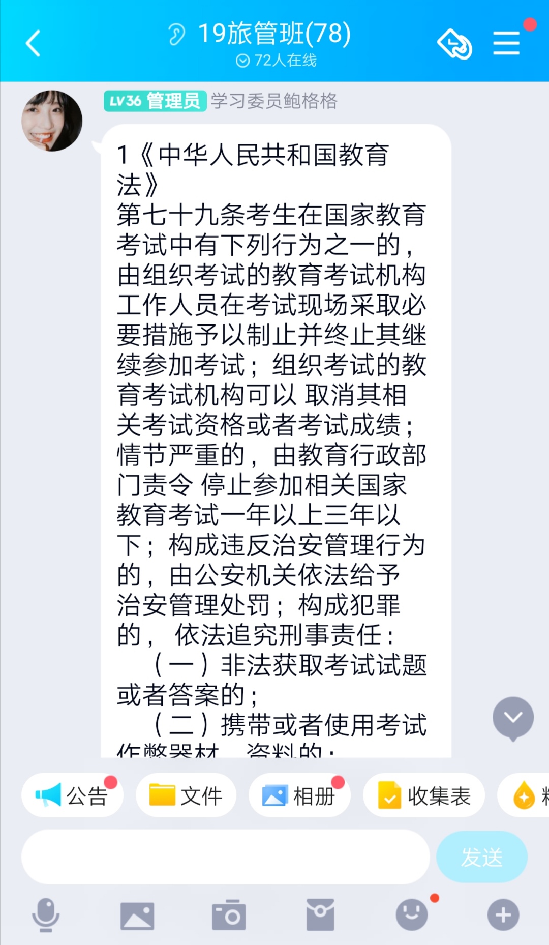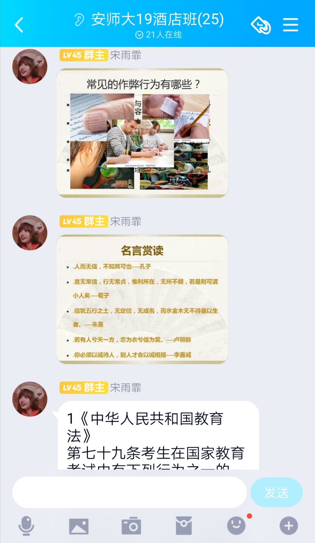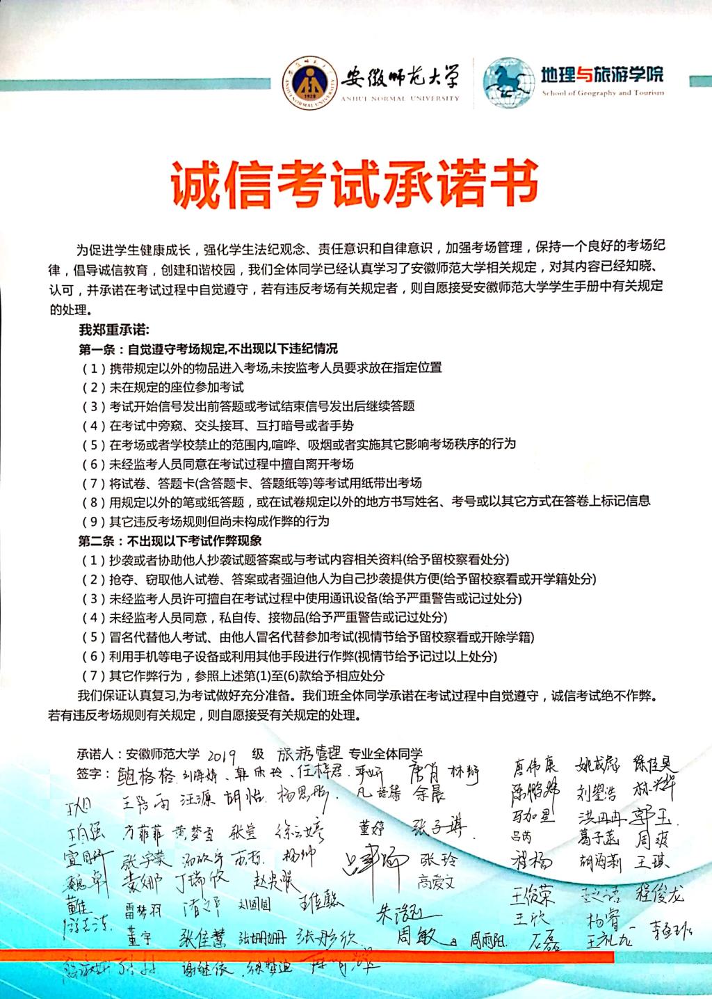 通过此次主题班会,同学们深刻认识到诚信应考的重要性,树立了诚信考试的理念。相信在即将到来的期末考试中,2019级旅游管理所有同学们都能拿出积极饱满的态度,诚信应考,创造佳绩。