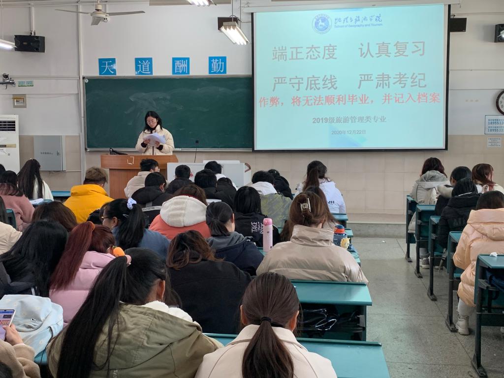 杨睿)期末临近,为营造良好的考试氛围,净化考试环境。近期,2019级旅游管理专业大类召开了诚信考试教育主题班会。会议由辅导员徐倩老师主持。2019级旅游管理、酒店管理所有同学参与其中。
