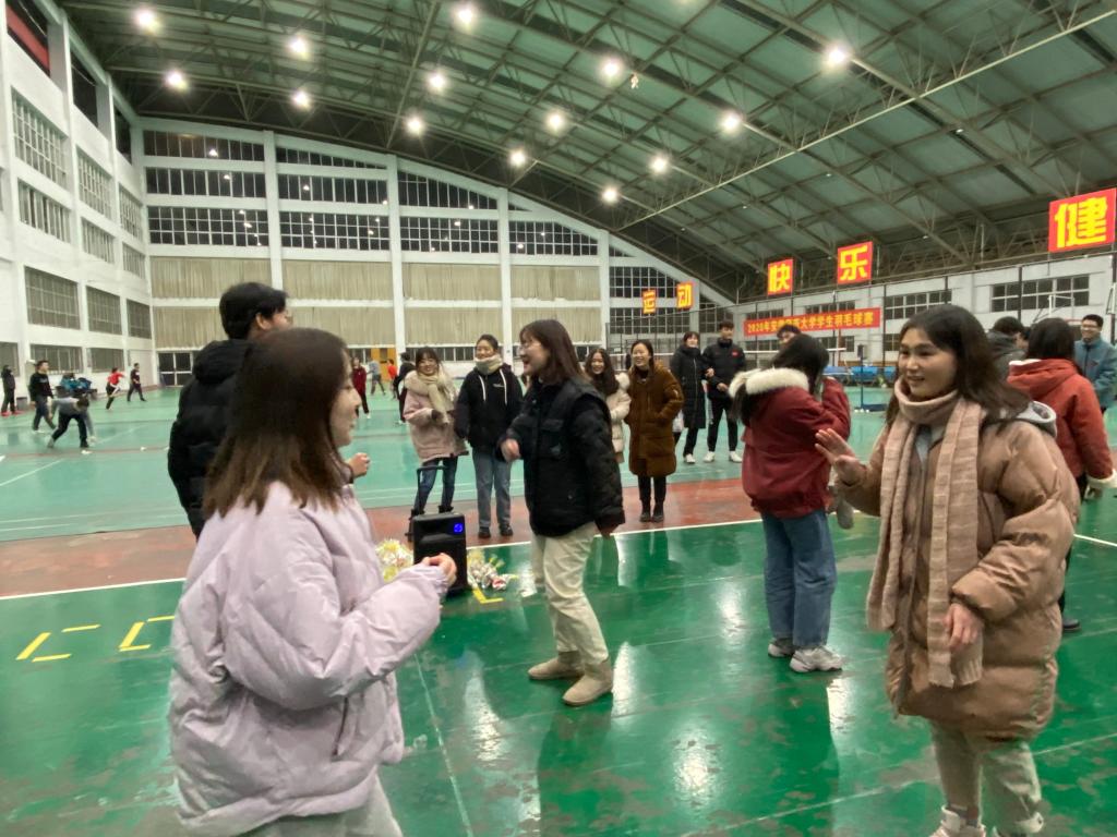 在接下来的游戏环节中,同学们积极主动参与,你画我猜、踩报纸、四人五足等游戏让同学们在愉快地氛围中也感受到了集体的美丽所在,现场气氛很是活跃。同学们踊跃参与游戏,获胜的小组得到了精心准备的纪念品。即兴表演环节中,徐菁、孙云峰、马育荣、张家旺、柳铭伟、余志平和吐尔洪阿义等同学纷纷用歌声为同学们送上新年祝福,其中,来自新疆的色热吉丁同学还用他的母语为同学们献歌一曲,现场气氛热烈,最后大家一起合唱班歌《飞云之下》。晚会结束之际,2020级旅游管理全体同学给学院的全体老师们录了跨年祝福视频,为此次晚会画上完美的句号。