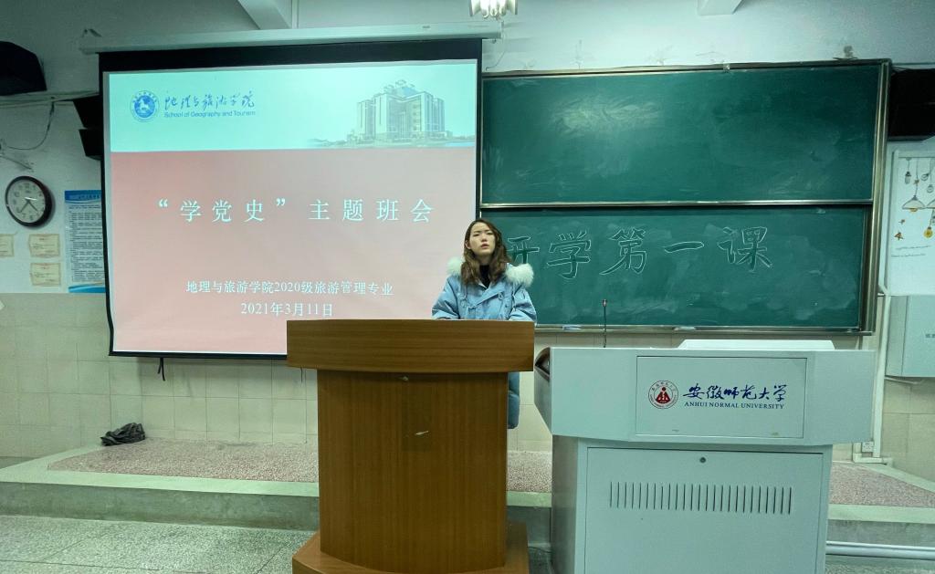 孙云峰)为进一步加强大学生思想政治数育,激发广大同学以饱满的精神、奋进的姿态投入新学期的学习和生活。根据学校统一安排,2020级旅游管理专业于3月11日在行知楼4号楼203教室开展新学期“开学第一课”主题班会,活动由辅导员赵佳慧主持,2020级旅游管理专业全体同学参与。