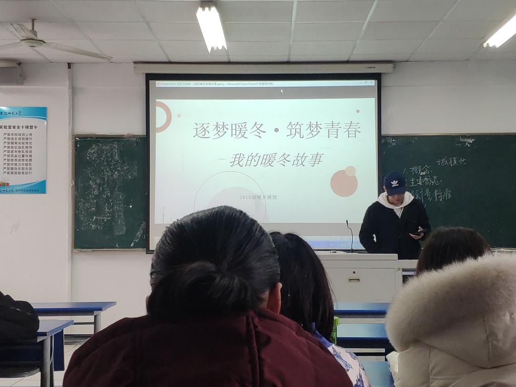 本网讯(潘爽)为庆祝建党100周年,巩固寒假生活。2021年3月20日下午三点,2018级城乡规划专业于地旅实验楼203举办“学党史,忆党章”团日活动暨“逐梦暖冬,筑梦青春——我的暖冬故事分享会”。活动由团支书陈雨主持,2018级城乡规划专业全体学生参加。