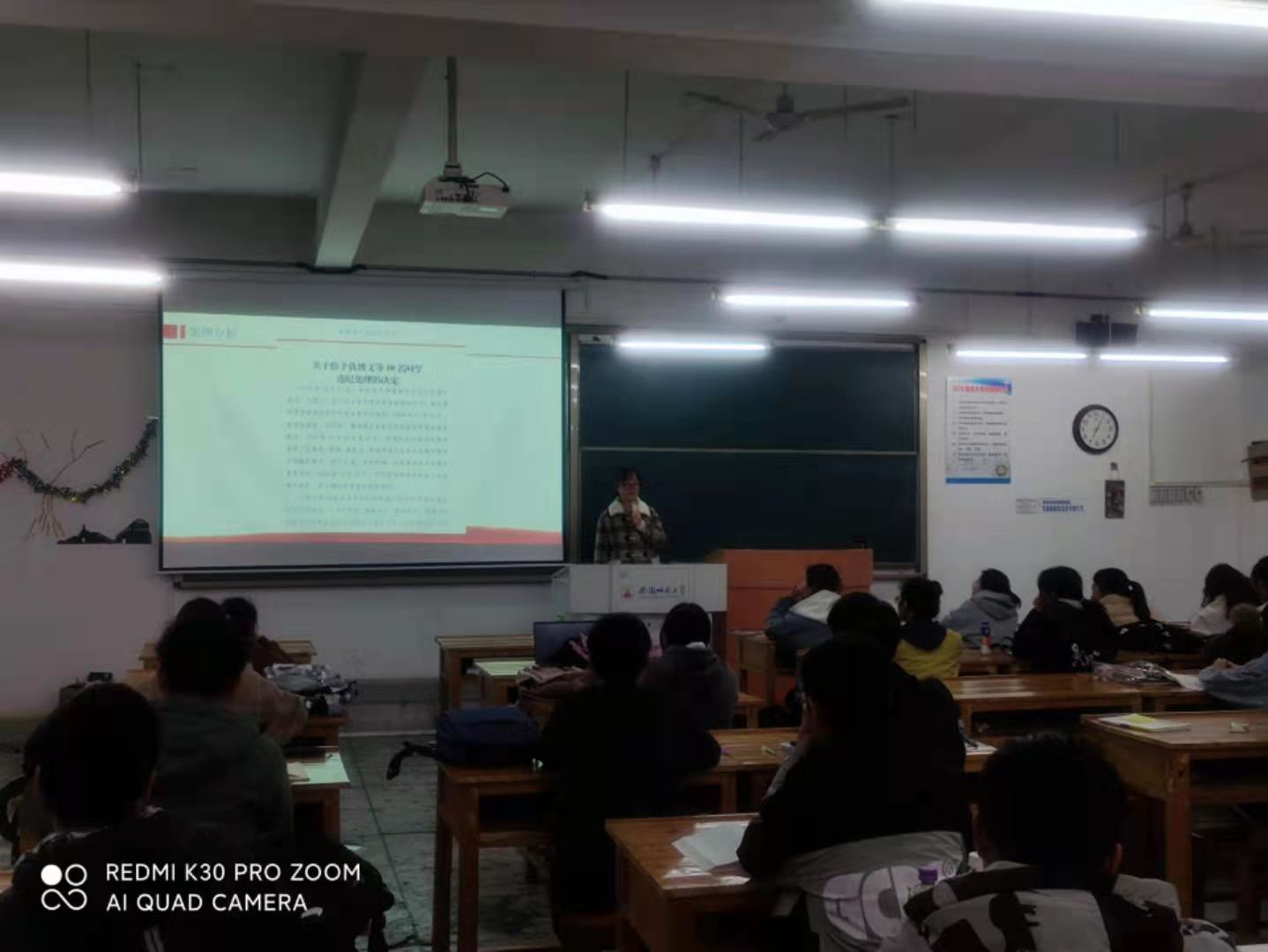 首先,徐嘉祺以提问的方式引出活动主题,通过精彩的案例以及学校对违纪同学的通报决定向各位同学强调了认真学习并严格遵守校规校纪的重要性。接着,徐嘉祺带领大家认真学习校规校级,并领读色情动漫