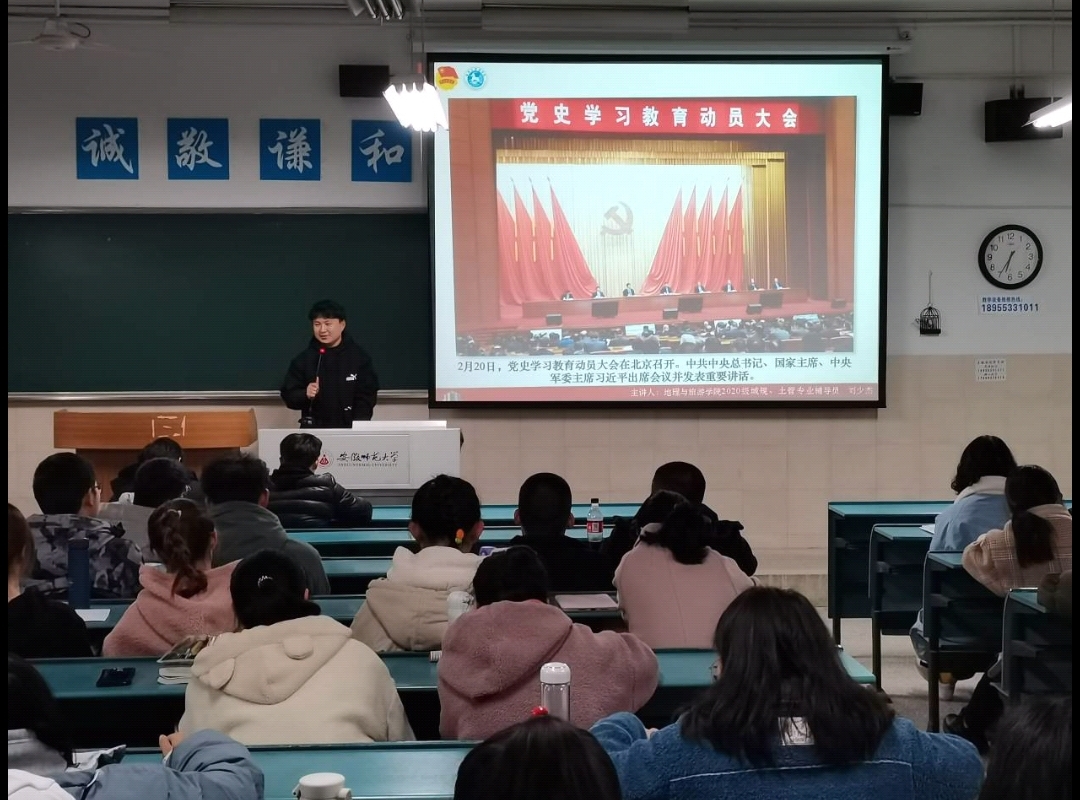 刘少杰 陆峻然) 为贯彻落实习近平总书记在党史学习教育动员大会上的重要讲话精神,引领广大同学学史明理、学史增信、学史崇德、学史力行,2021年3月16日晚,20级土地资源管理、20级城乡规划开展党史学习教育主题教育。此次党史学习教育主题教育主要包括:党史学习教育主题班会,集体观看红色影视作品,团员分享党史学习教育心得。