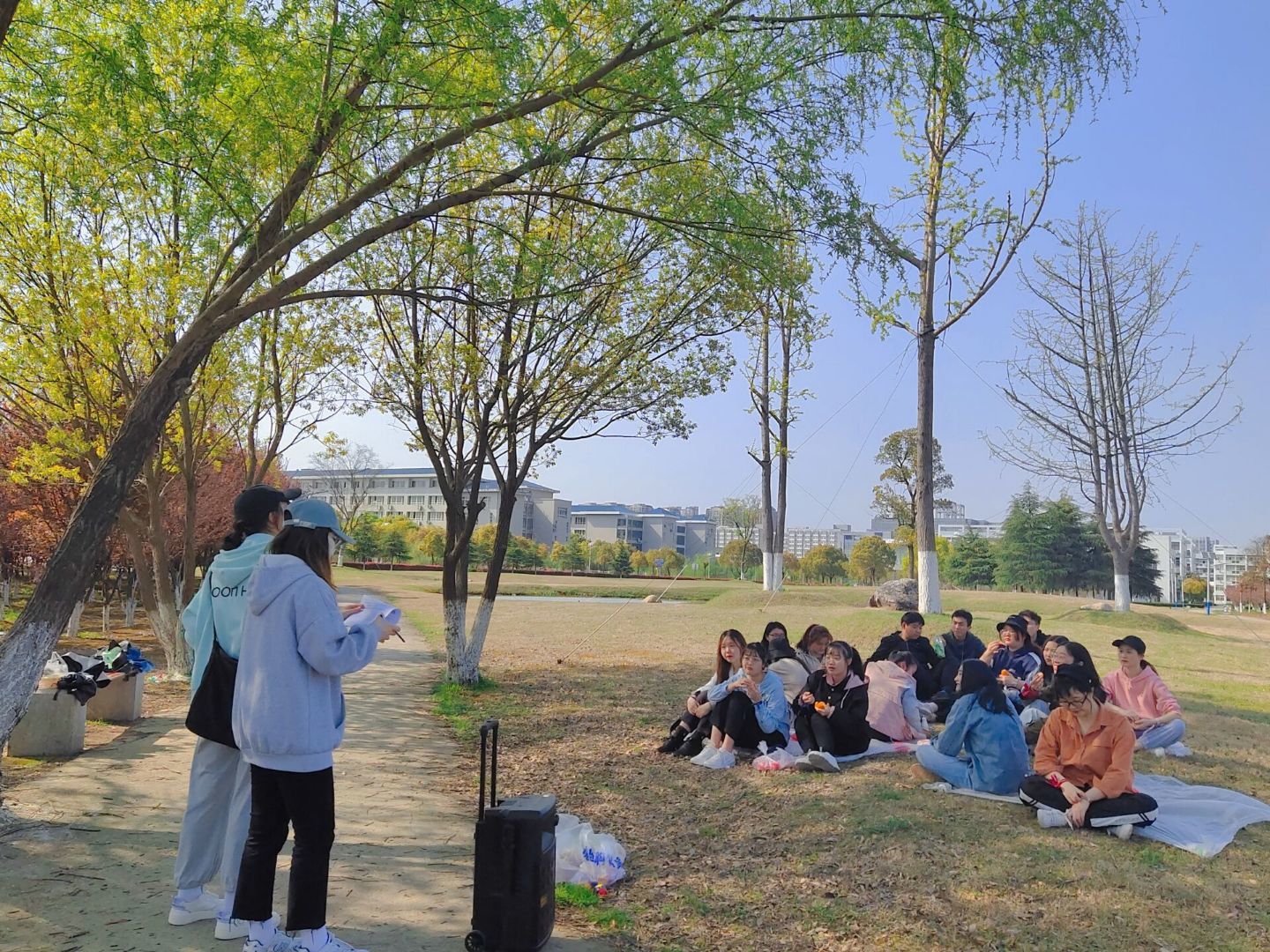 辅导员徐倩的参与极大调动了同学们的积极性,增强了同学与辅导员的联系,在一次次游戏中变的更加亲近。本次活动在安全的前提下保证人人参与,全体班委在参与的同时辅助游戏进行,全体同学都尽情展示出自己的青春活力,临近结束大家都意犹未尽,笑容一直常挂嘴边。在打扫收拾完野餐场地后,本次春日野餐活动圆满结束。