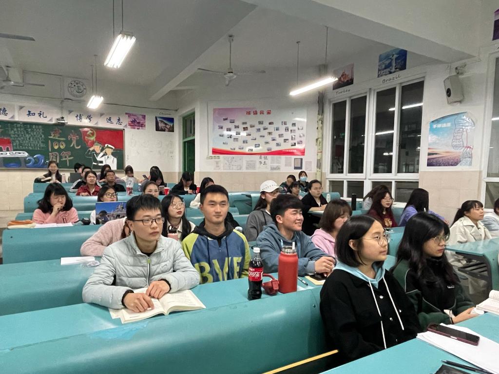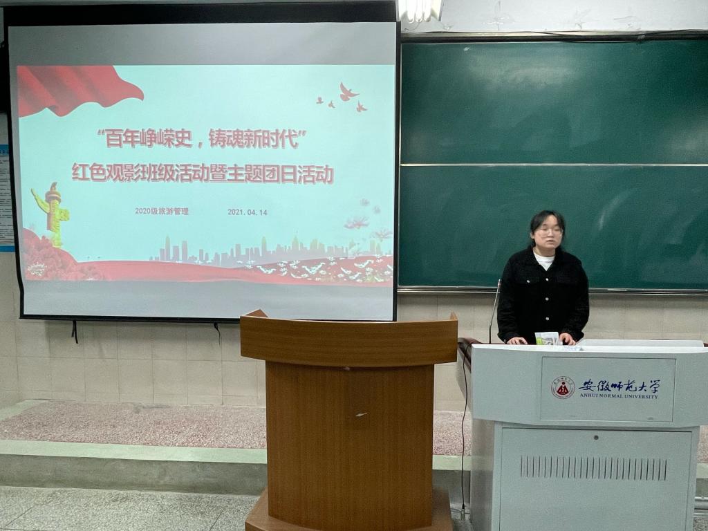 赵佳慧 孙云峰)为进一步加强爱国主义思想教育,引导同学们不忘初心,牢记使命、铭记革命前辈和先烈。4月14日晚,2020级旅游管理专业组织开展了“百年峥嵘史,铸魂新时代”红色观影主题团日活动,班长徐菁组织同学们集中观看爱国主义题材优秀影片《八佰》。