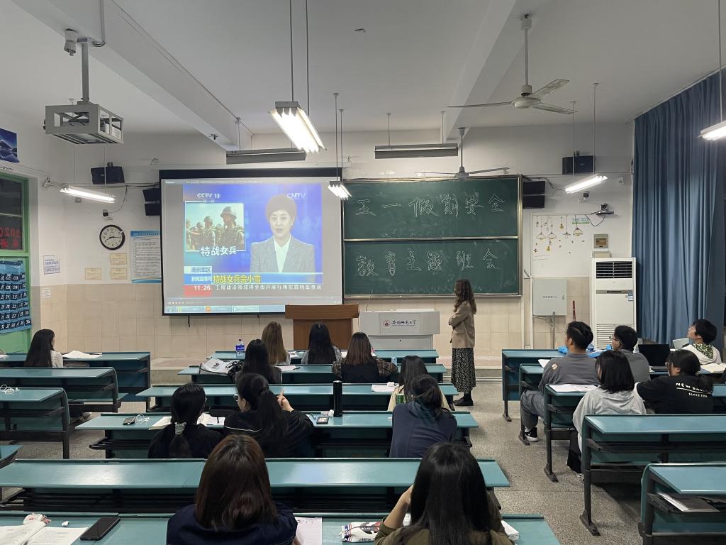 赵佳慧 孙云峰)投笔从戎,报效祖国。为加强同学们对国家征兵入伍优惠政策的了解,鼓励同学们积极报名入伍,同时增强同学们的爱国信念,4月28日晚,2020级旅游管理专业于行知楼4号楼203教室召开以“参军入伍 无上光荣”为主题的班会,班会由20级旅游管理专业辅导员赵佳慧主持,20级旅游管理的全体同学们参与了此次班会。
