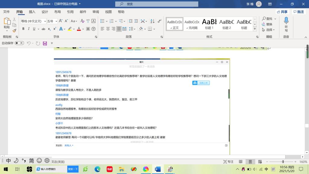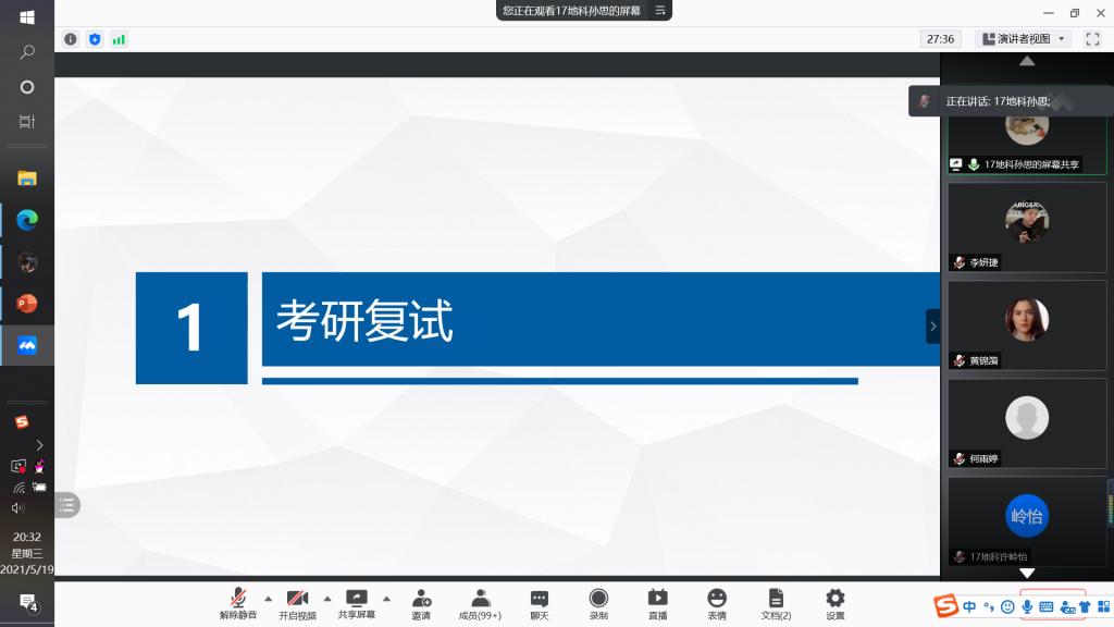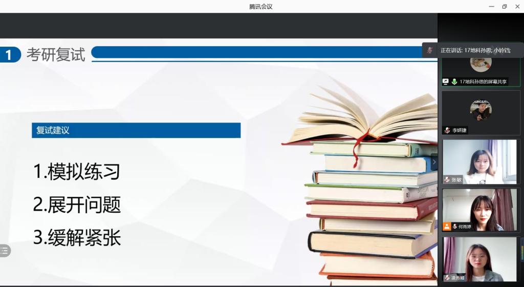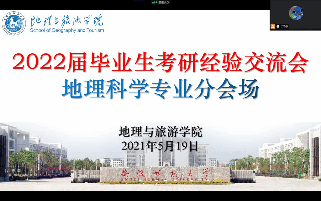 于线上开展了地理科学专业考研经验交流分享会。出席本次经验交流会的成员主要有地理科学专业负责人朱永恒教授、地理系专业教师孙鹏、吴立、胡春生、汪青、张平究、刘学梅老师、辅导员丁茹栩、2017级地科考研学生代表和2018级地科全体考研学生,会议由张瑞清同学主持。