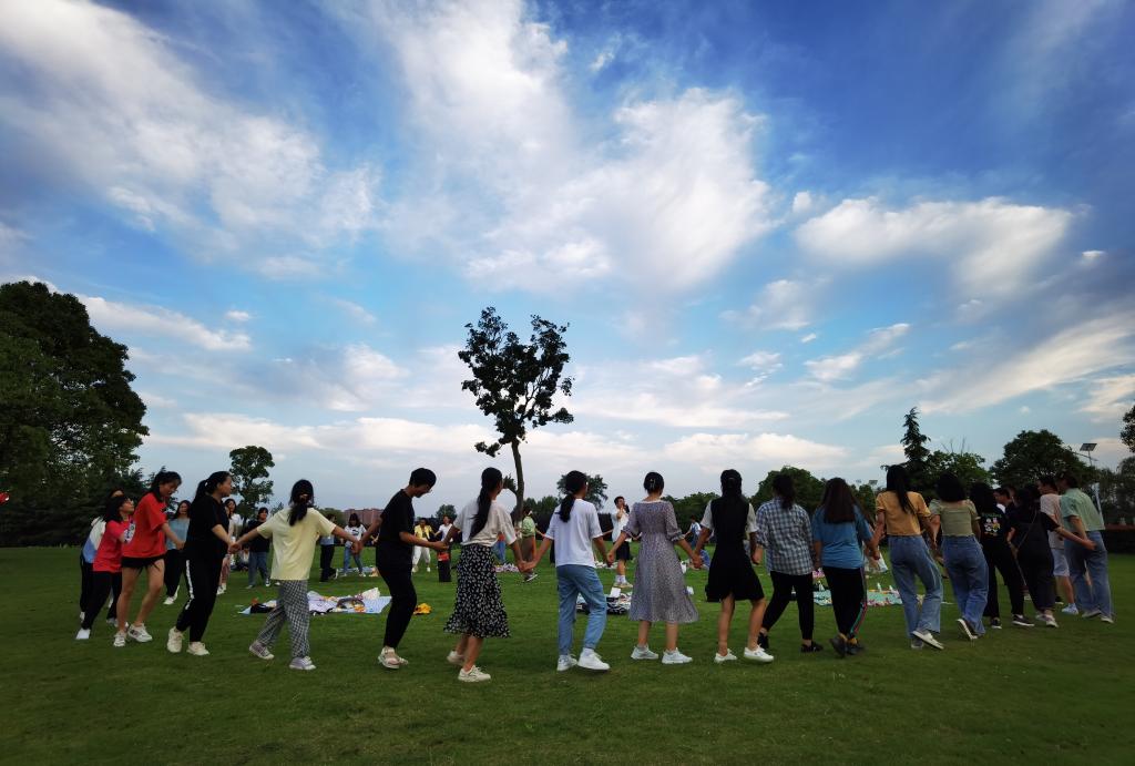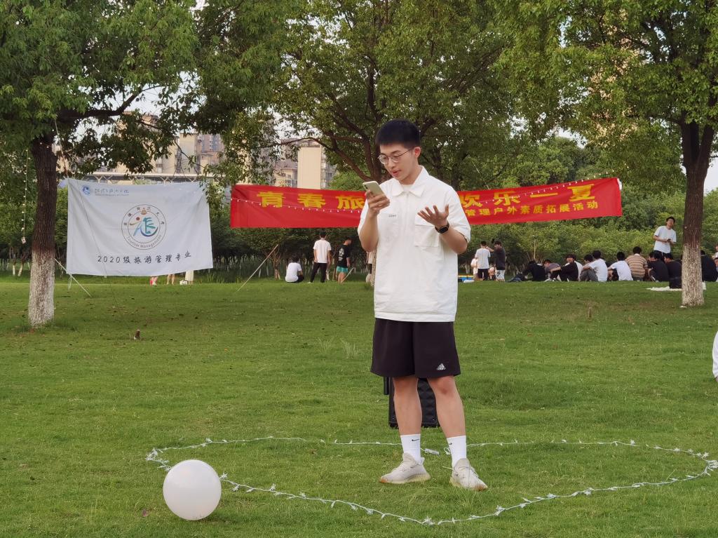 孙云峰 赵佳慧)挑战自我、熔炼团队;凝聚力量、成就自我。为增强2020级旅游管理专业学生的班级凝聚力,增进同学们之间的感情,促进班级内部的交流,营造积极向上的集体氛围和发扬互帮互助的团队精神,5月30日傍晚,在辅导员赵佳慧老师的带领下以及班委们的组织下,2020旅游管理专业全体学生在校内草坪上开展了生动有趣的户外素质拓展实践活动。