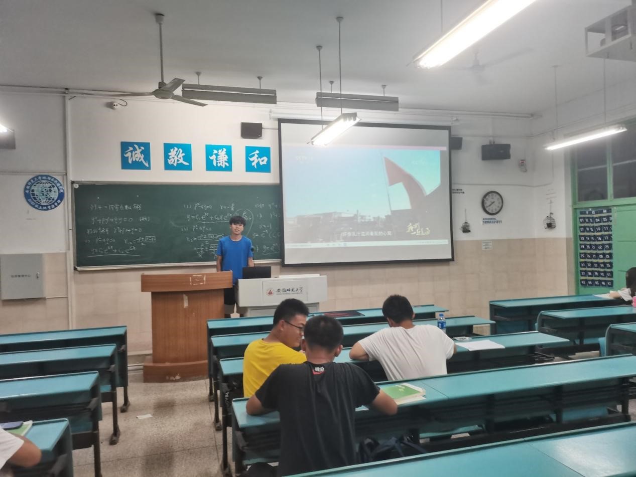 “新中国处在十字路口时,是一位老人指引新中国找准了前进的方向。让我们一起回顾改革开放的那段历史。”首先主持人播放了一段由共青团中央制作的改革开放纪录片《我们一起走过》。“伴随着第一缕晨曦,这片宽厚、丰饶、秀美、辽阔的土地,又一次张开温暖的怀抱”,同学们不禁被这优美的纪录片的开头所吸引,自觉跟着纪录片一起学习新中国改革开放的历史。接着,班级素质拓展委员蒋家乐同学主动走上讲台与大家分享自己的学习感受,他说到,“结合本专业所学的知识,我对视频中的‘1987年,中国土地第一拍’产生了兴趣。因为它标志着新中国第一次通过市场配置来分配土地,这也是改革开放所带来的活力。”