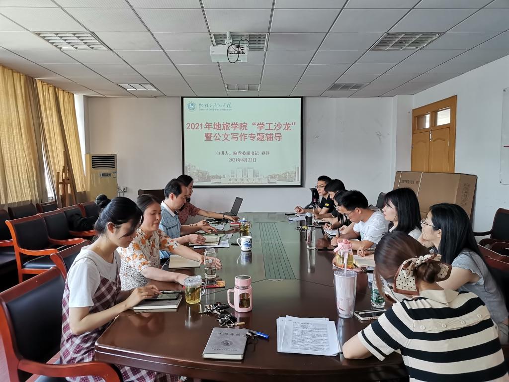院党委副书记乔静主讲,专题辅导公文写作,并进行宗教法规政策学习,学院全体专兼职辅导参会。