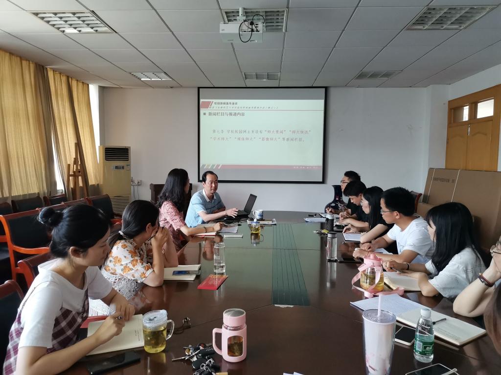 会议第一项,公文写作专题辅导。乔静从校园新闻宣传的内容、新闻栏目与报道内容、新闻审核与发布三个主要方面展开,详细介绍了新闻宣传的内容要求、报道栏目、撰写规范以及新闻时效性等理论知识,随后他以日常工作中辅导员提交的新闻稿、考察材料、回复意见等公文为案例,详细分析了初稿及修改润色前后的差别,在对比分析中提升专兼职辅导员的写作水平。此外,他还以中国教育报、教育部网站等媒体上的典型文章,逐字逐句分析解读,并强调辅导员一定要加强政治理论和工作业务学习,在学习实践中持续提升工作实务能力,做到政治强、情怀深、思维新、视野广、自律严、人格正。