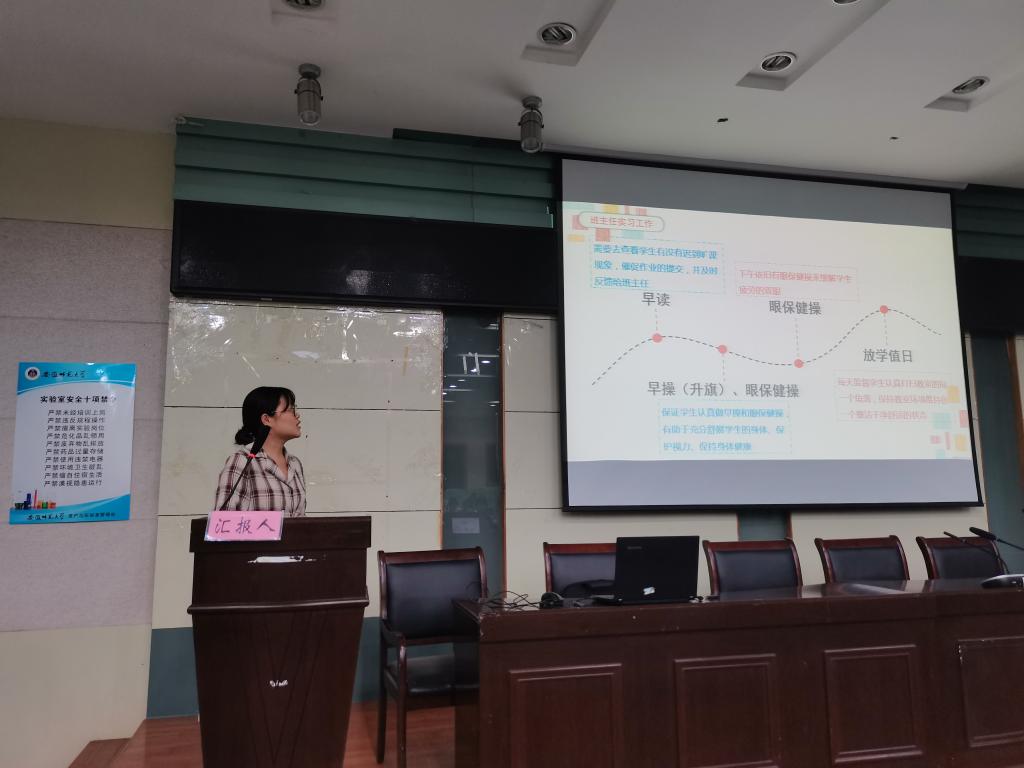 丁茹栩首先祝贺2018级地理科学(师范)专业全体同学教育实习顺利结束并宣布实习汇报会正式开始。14个实习小组与各个小组的优秀实习生分别汇报了三个多月以来实习生活中的苦与乐、收获与成长、反思与进步,并纷纷表示通过此次教育实习提高了自我,锻炼了职业技能,为将来走上讲台积累丰富经验,打下坚实基础,汇报得到了学院领导和老师们的肯定和鼓励,也引起同学们的共鸣。