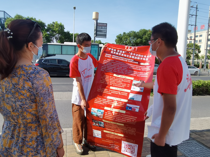 在调研的过程中,为了加强党史教育学习,普及党史知识,团队成员积极采取行动,热情地向上海市民介绍“总书记的红色足迹”党史教育基地红色旅游数字地图,并引导市民使用,让市民们更加了解红色精神、红色文化。
