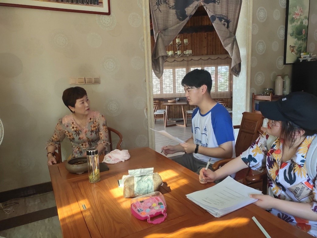 第一天去村民家发问卷的时候,队员们还不够熟悉相关流程,加上天气炎热,问卷进展较慢。当地一位居民了解到队员们在进行暑期社会实践后,主动答应队员们填写问卷。
