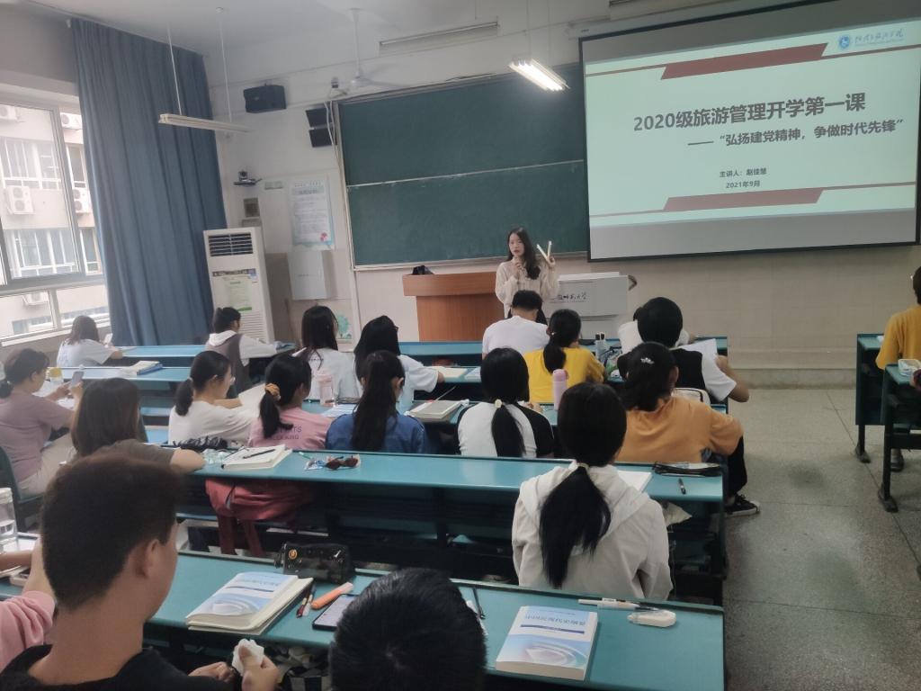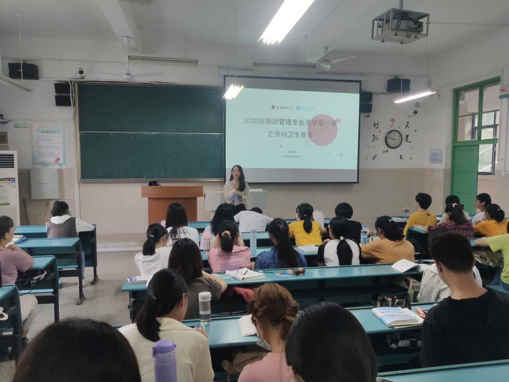 赵佳慧 舒玉茹)为进一步加强大学生思想政治教育,在提高同学们法治素养的同时,营造良好的班级卫生环境,激发广大同学以饱满的精神、奋进的姿态投入新学期的学习和生活。2020级旅游管理专业在9月29日上午召开了开学第一课系列主题班会,班会由辅导员赵佳慧老师主持召开,2020级旅游管理专业全体同学参加。