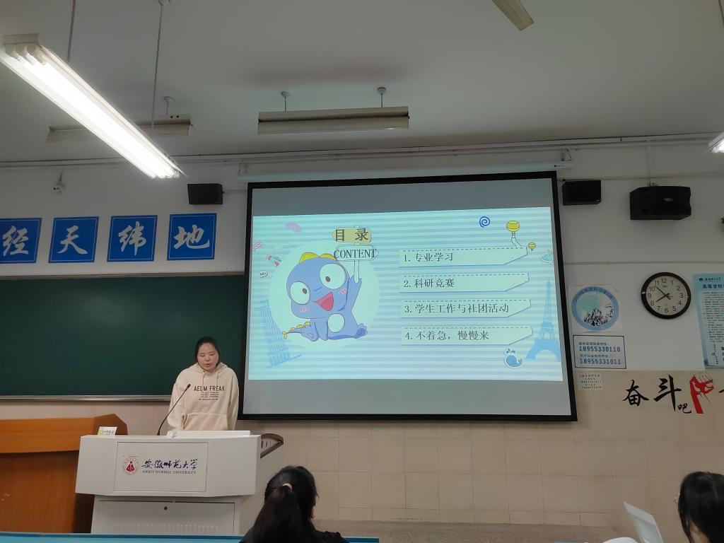 经验分享助成长。在经验介绍方面,学姐们既提出了“自觉”、“目标”、“主动”等勉励,也告诫同学们不要“假勤奋”、“一味合群”、“颓废拖延”。这既是自身的经验总结,也回顾过往的反思。分享后,同学们积极提问,就专业学习、课余生活、考级考证、社会实践和未来发展等方面提出了问题并互相交流。