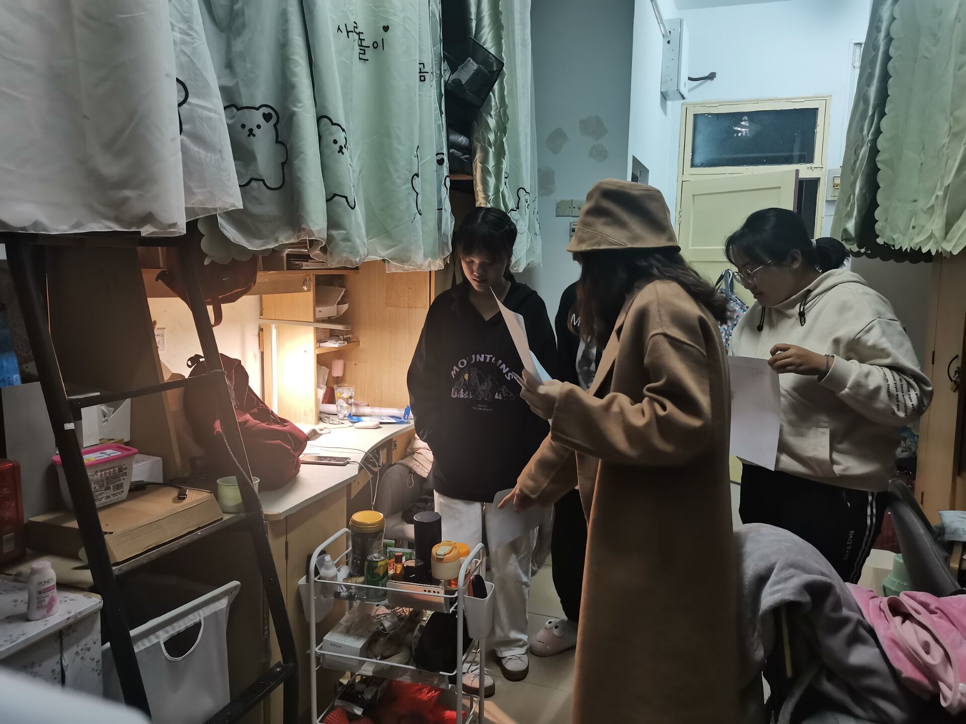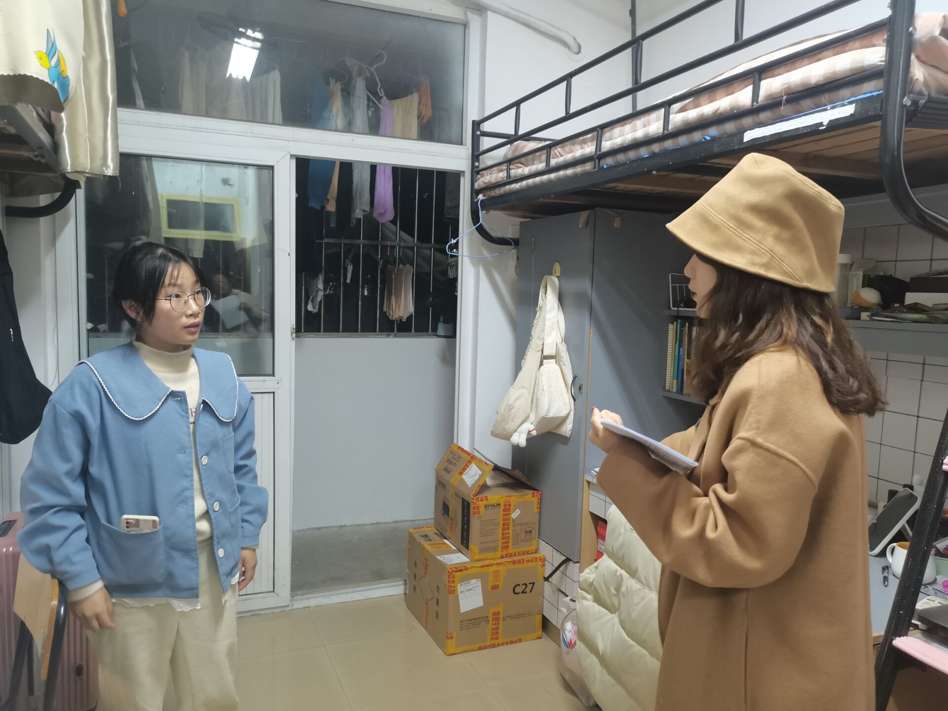 本次检查工作按照男女寝室顺序依次进行。在查寝的过程中,辅导员以及相关班委对宿舍卫生,用电安全进行了仔细检查并了解同学们近期学习生活状况。赵佳慧反复叮嘱提醒同学们,冬日天气干燥,请大家注意寝室的消防安全,快递盒塑料瓶等杂物要及时清理,宿舍无人或在睡觉的情况下一定要断电,严禁私拉电线或把拖线板拉到床上,注意用电安全。要高度重视寝室内消防安全。班委及寝室长代表也从寝室卫生、消防安全、综合评价三个方面对每个寝室进行评分,并对可能存在的安全隐患进行了详细记录。在检查结束后,安全委员将评分情况进行了班级公示,并对评分较低的寝室进行的回访复查。