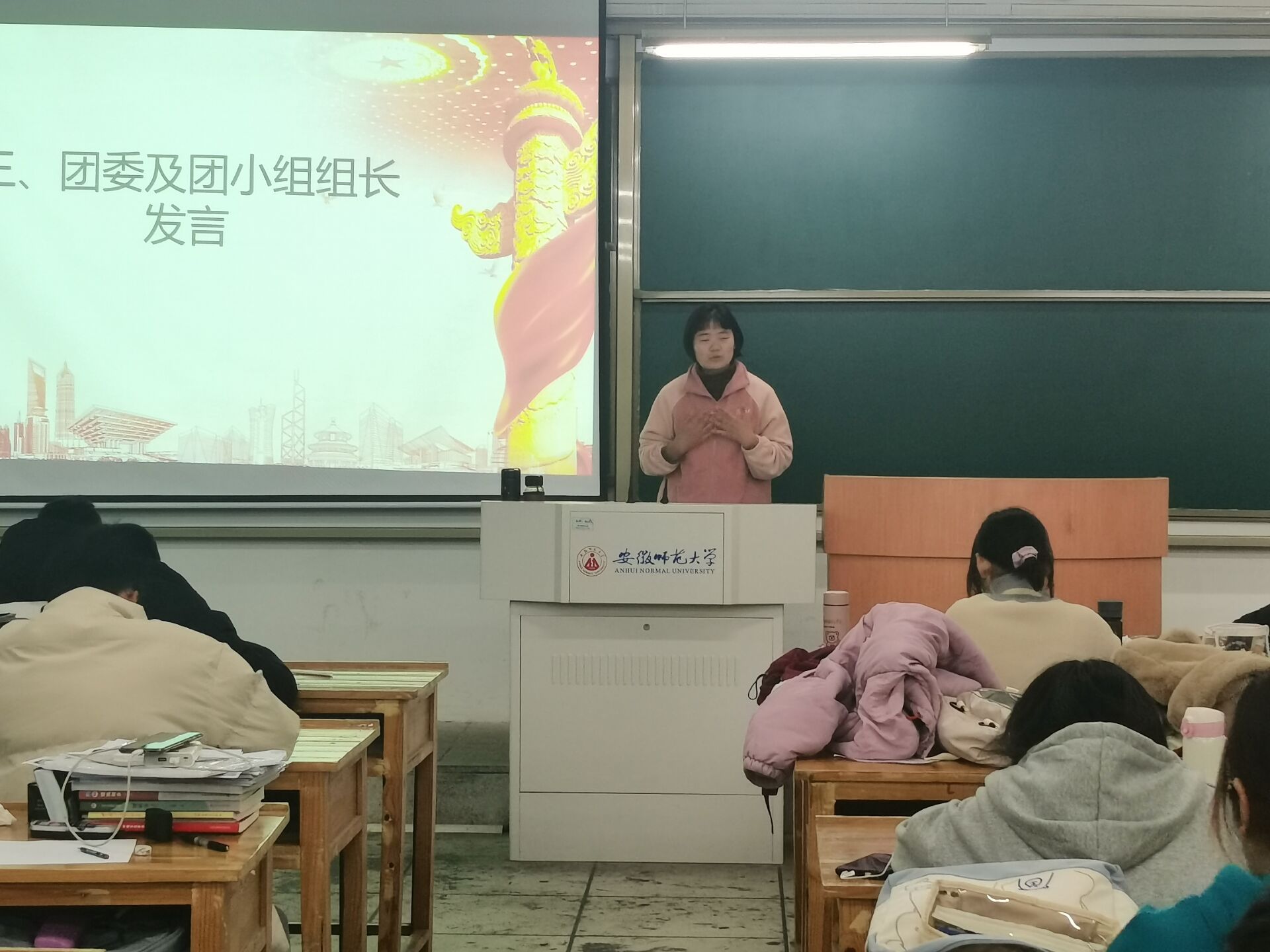 此后,由团支委和团小组组长进行发言。各团委分别介绍了自己的职务和学习经验,同时表达了自己对于未来工作的规划。各团小组组长也结合生活学习实际和自身日常行为表现的情况,进行了交流发言。同学们踊跃发言积极推进了团组织的交流建设,同时为同学们树立了优良的团员形象,营造了良好的班级氛围。