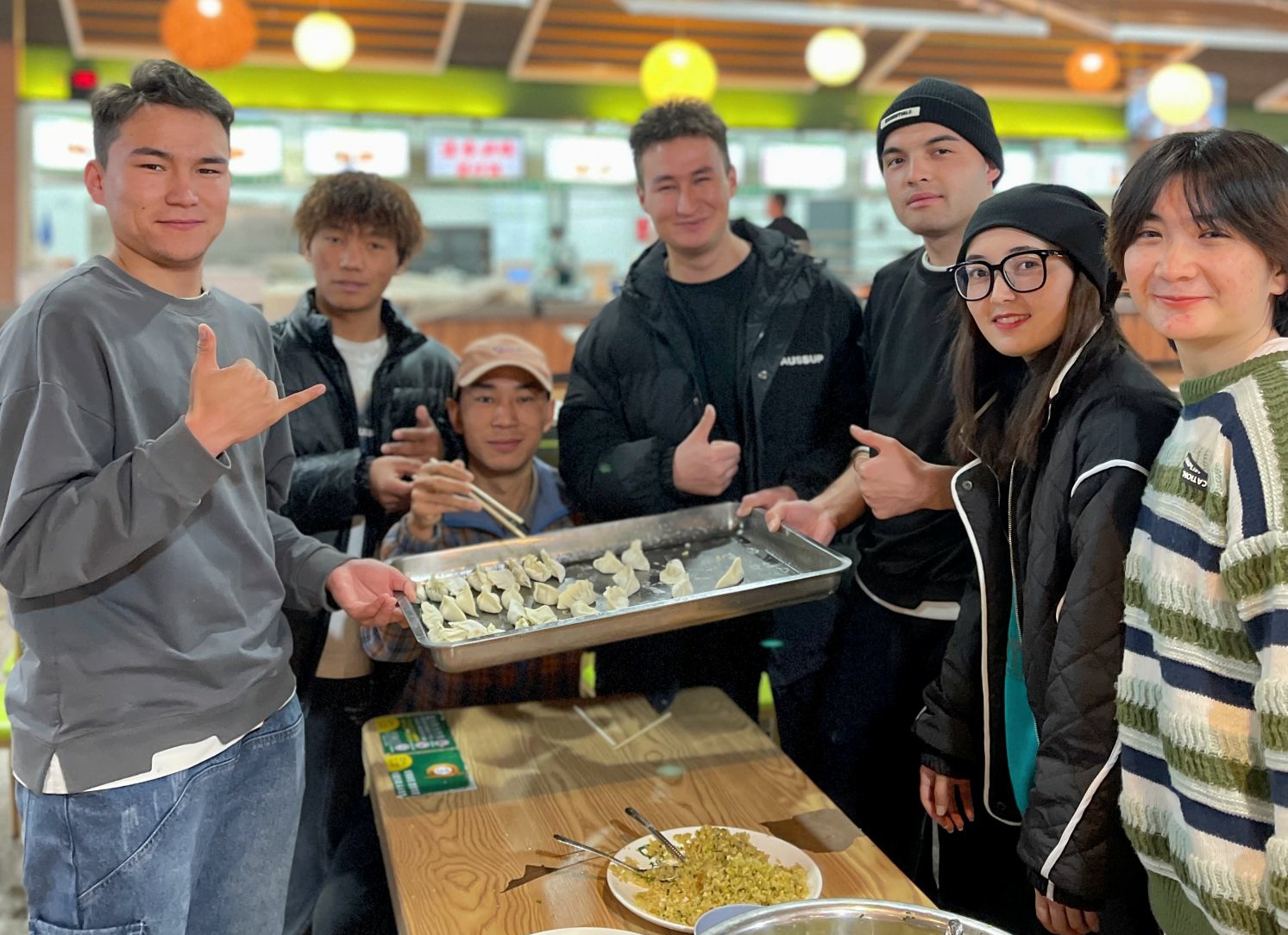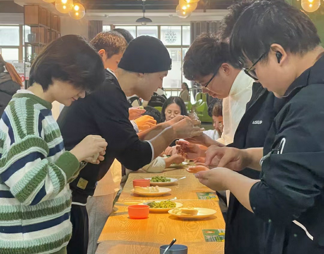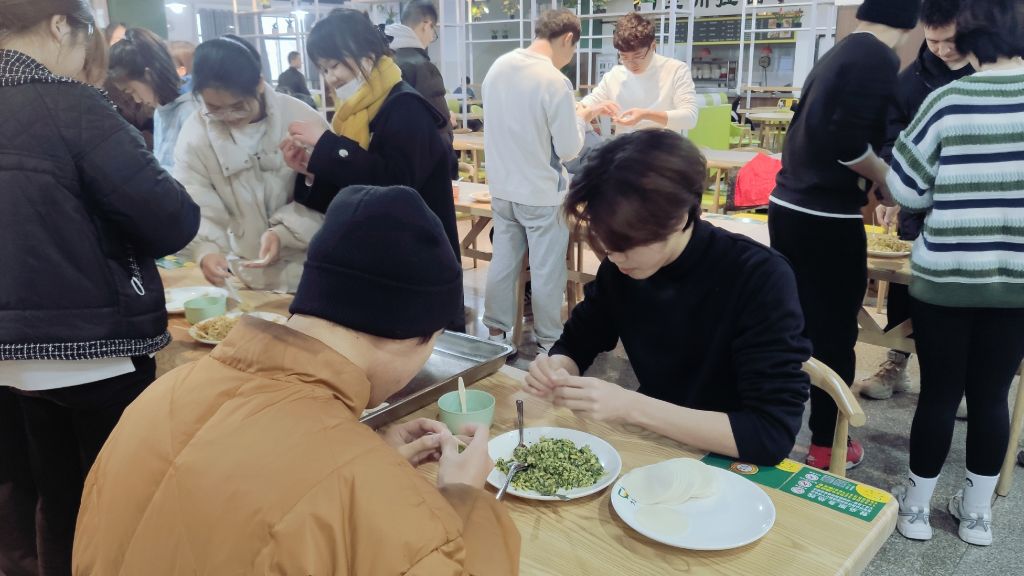 活动伊始,先是由班委组织大家进行手部清洁和消毒,确保包饺子过程中的安全卫生;紧接着,同学们自由组队,分成三支小队,在三张长桌上同时开始包饺子。作为中华民族传统美食,饺子承载着吉祥如意的美好意愿。在正式开始之后同学们各自都大显身手,有的同学熟练掌握包饺子技巧,短短时间就包出了外形美观,馅料饱满的“漂亮”饺子,也有同学充分发挥想象力和创造力,包出了奇形怪状、令人捧腹的“可爱”饺子,在欢愉的气氛中同学们一遍创作美食作品一边交流饺子文化与传统习俗,从开始的稍显稚嫩,到逐渐得心应手,同学们在不断尝试中掌握了包饺子的要领。终于在大家的齐心协力下,伴随着升腾的热气,同学们亲手制作的饺子也新鲜出炉,大家都排排坐等待品尝自己的劳动成果。辅导员赵佳慧说,希望同学们通过这次包饺子的活动,充分体会到劳动的不易,做到珍惜粮食;同时希望大家可以通过丰富多彩的活动加强交流,增进情感。