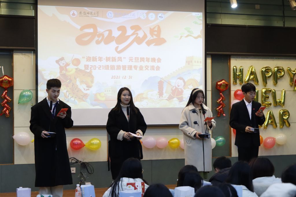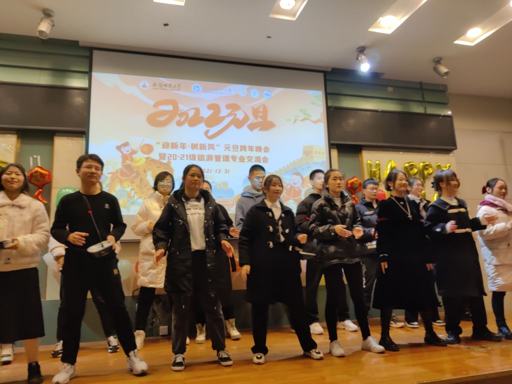20级旅游管理、21级旅游管理携手举办“迎新年·树新风”元旦跨年晚会暨学习交流分享会。此次晚会由两个年级的班委共同策划准备,相关专业辅导员韦银艳、赵佳慧、吴文涵、刘少杰等老师受邀参加,和同学们共同庆元旦,迎新年。