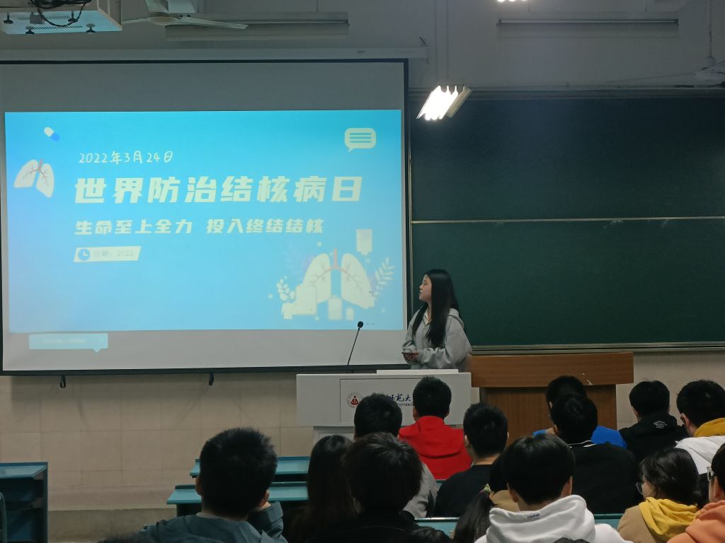 马思甜 吴文涵)2022年3月24日是第27个世界防治结核病日,为有效防范学校结核病疫情的传播流行,保护广大师生身体健康,2021级地理科学(拔尖人才班)响应教育部联合国家卫生健康委在《中国学校结核病防控指南》中和世界卫生组织在《莫斯科宣言》中做出的要求,由安全委员王露召开以“生命至上,全力投入终结结核”为主题的安全班会,拔尖班全体同学参加。