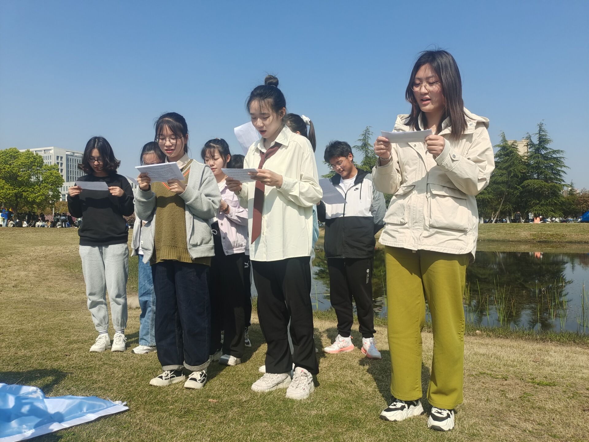 韩红豆 王欣怡)为引导学生继承革命先烈的光荣传统、弘扬民族精神,4月3日下午,21级地理科学(师范)专业1班团支部在美术学院南侧草坪开展“清明祭英烈暨学习党的青年运动史”户外主题团日活动。本次活动由团支书翁丹煜主持,班级全体同学参加。